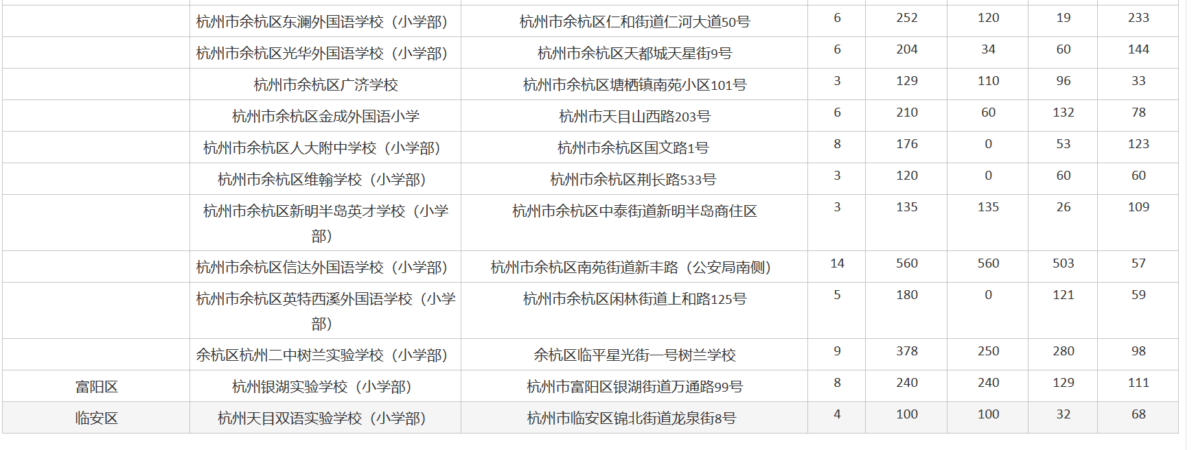 2020年杭州市各區(qū)民辦小學(xué)二輪補(bǔ)招生計(jì)劃